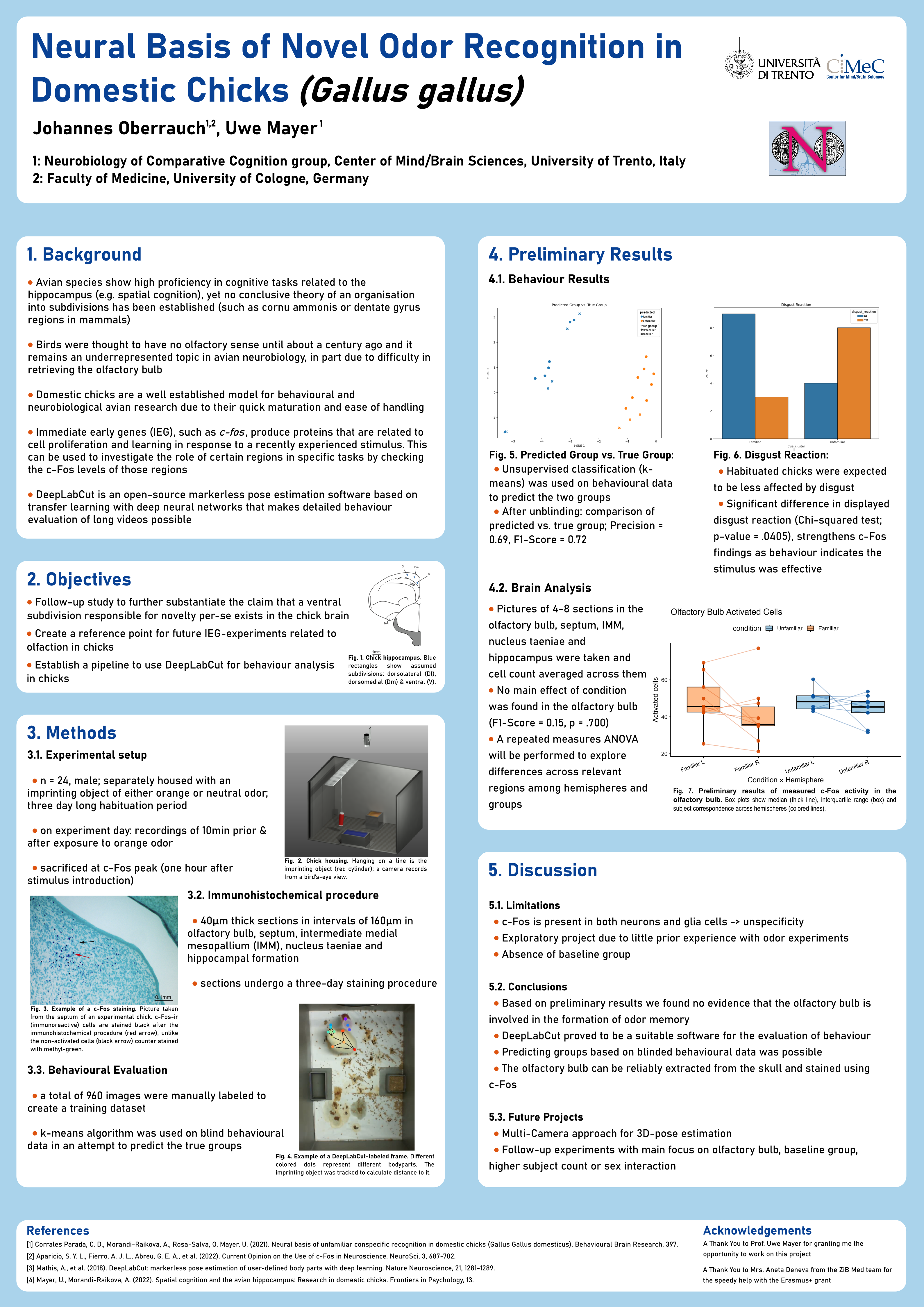 We presented 24 3-day old domestic chicks with either a familiar or unfamiliar scented object and analysed their behavioural and neural response.